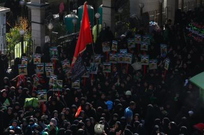 Sie trugen Bilder von Märtyrern des Haschd asch-Schabi und speziell Bilder der Männer der Hawzah in Nadschaf, die auf dem Weg der Wahrheit und Freiheit starben, den Imam Hussein (a) mit seiner Revolution gezeichnet hat. Der Name Karbalas trägt die Bedeutungen des Martyriums in sich, der Sieg des Blutes über das Schwet und der Sieg des Rechts über das Unrecht. Es erinnert an das Epos des Ruhms und der Heldentaten, sowie der Würde, der Großmut und des Stolzes. Diese Mütter waren nicht allein, sondern versammelten sich mit den Frauen, Schwestern und Töchtern, um Zeinab, Rabab und Sukeina (as) ihr Beileid zu bekunden.