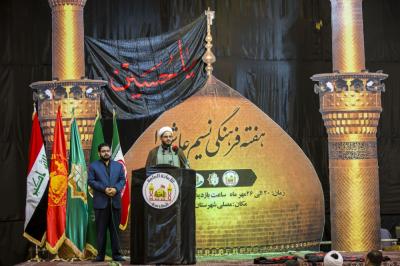 وأضاف "لا يخفى عليكم ايها الاعزة ما مدى قوة الروابط والوشائج بين الشعبين الجارين الا ان اقواها واهمها هي رابطة الولاء للنبي الاكرم محمد (صلى الله عليه واله وسلم) واهل بيته (عليهم السلام) و ان وجود عتبات الائمة الاطهار الامر الذي ادى الى تبادل الزيارات بين البلدين بشوق ومحبة واحترام ، ولقد عمد حكام الظلم في فترات زمنية متعاقبة الى اضعاف هذه الروابط ولكن لم تزدد الا قوة، وان اقامة هذا المهرجان العاشورائي انما هو مصداق لما ورد في الروايات الشريفة من انه سوف تنصب في كل بقعة راية ترفرف معلنة الحرية رافضة الظلم والطغيان واقامة العزاء على سيد الشهداء (عليه السلام)".