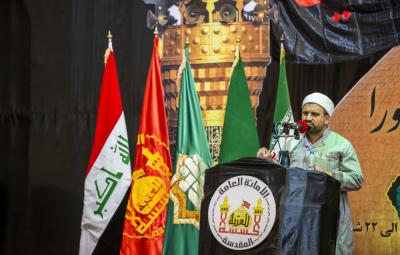 وخاطب الشيخ مرادي وفود العتبات المقدسة قائلاً " يا خَدَمَة الامام الحسين (عليه السلام) نحن نتبرك ونتشرف بهذا الامام ونتوسل بالله عز وجل بمنزلته عنده لقضاء حوائجنا وحوائج المؤمنين في مختلف اصقاع العام".