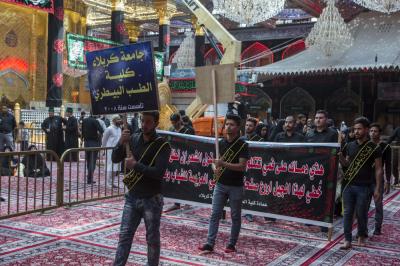 Kundi la waombolezaji wa tukio la vita ya Karbala, lililo jumuisha wanafunzi na walimu wa chuo kikuu cha Karbala wamefanya matembezi ya maombolezo na kuonyesha uungaji wao mkono wa harakati ya Imamu Hussein (a.s).