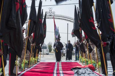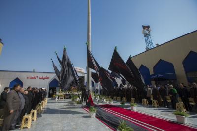 Comme d'habitude chaque année et au début de la saison de de la ziyarat de l’imam Al Hussein paix sur lui (Arbaeen), l'hôte extérieur du seuil saint sur la route (Karbala sainte - Najaf Ashraf) met la cérémonie du levé de la bannière de la générosité et de la qualité supérieure pour annoncer la disponibilité aux visiteurs et leur fournir divers services, Le visiteur, qui chaque année a l'habitude de voir ce drapeau qui vole haut, est sur le site d'accueil.