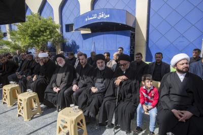 Puis vint le mot du Secrétariat général du sanctuaire saint Al Abbas prononcé par M. Adnan al-Moussawi, du Département des affaires religieuses, qui a rappelé une scène des scènes douloureuse de la tragédie Al Taf, qui est le retour de dame Zainab (paix soit sur elle) lors des quarante jours après le martyr de son frère de l'Imam Hussein (la paix soit sur lui ), rappelant ce qui a immortalisé la tragédie des grandes positions, notant que, hier a eu le remplacement du drapeau rouge du sanctuaire d'Abu Abdullah al-Hussein et le sanctuaire de son frère Abou al Fadl al-Abbas (la paix soit sur eux) par des drapeaux noires, ce qui est devenu une cérémonie annuelle célébrée par les fidèles, et aujourd’hui la levée d’une autre bannière sur l’accueil d'Abu al-Fadl al-Abba (la paix soit sur lui), et ceci n'est qu'une réponse à ceux qui veulent éteindre la lumière de Dieu.