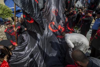 Il est à mentionner que le drapeau est levé sur une hauteur de 40 m, et mesure 13 m de largeur et 17m de hauteur, avec l’inscription (Paix sur toi O porteur du drapeau d’Al Hussein paix sur lui).