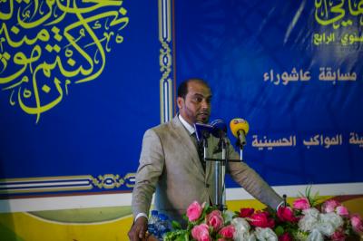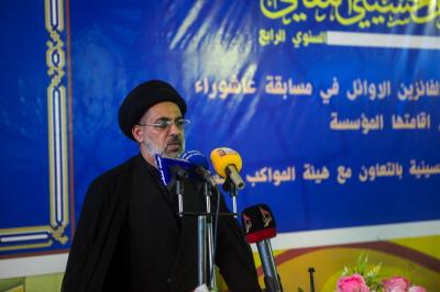 Après la récitation des versets du Saint Coran et la lecture de sourate Al-Fatihah en l'honneur des martyrs d'Irak et écouté l'hymne national, le Dr. Ammar Al-Rubaie, responsable des relations publiques de la Fondation, a prononcé un discours dans lequel il a déclaré: « Sous le slogan (Al Hussein nous réunit) et sous le patronage du secrétariat général du sanctuaire saint Al Abbas, la fondation Sujood tient son quatrième festival culturel annuel Al Taf husseini, et ce festival comprend plusieurs paragraphes y compris l’hommage aux lauréats du concours culturel Achoura, qui a contenu des questions sur l’histoire, la vie et scientifique sur la révolution de l’imam Al Hussein (p) et ses symboles avec des participants hommes et femmes de plusieurs provinces d’Irak. »