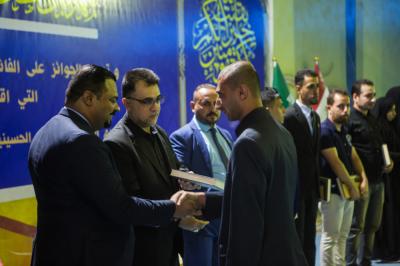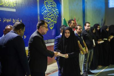 En outre, les prix ont été distribués aux premiers lauréats du Concours d'Achoura, créé par la Fondation, qui est un Mus'af et un cadeau financier en plus de visiter les sanctuaires sur la charge du seuil saint Al Abbas. 40 personnes à visiter Karbala et trois d'entre eux pour visiter le sanctuaire de l'Imam Reda la paix soit sur lui et d'honorables sanctuaires en Iran.