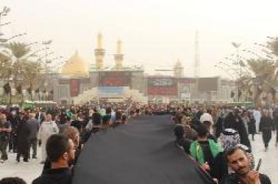 "Pour la cinquième année consécutive, Diyala porte la bannière de l'Imam Hussein, la plus grande bannière du monde, avec 4000 mètres, avec la participation de toutes les composantes de la province et de toutes les sectes et sunnites, et tous les départements de la province de la sécurité et du service, ainsi que l'enseignement supérieur et le ministère de l'Éducation et la mobilisation populaire ", a déclaré le chef de la délégation Adnan Yassin al-Tamimi...
