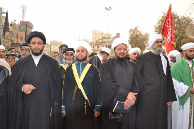 A Karbala, ce matin (10 Safar 1437 AH correspondant au 31 Octobre 2017), l’entrée de la plus grande bannière de condoléances husseinite venue de Diyala intitulé (Al Hussein nous réunit), avec une longueur de 4000 m, avec la participation de différentes sectes de la province, sunnites et chiites, arabes, Turkmène, et les services de sécurité, de services et de religion et les élus de la ville et les cheikhs de tribus de la province.