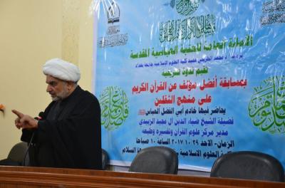 In Kooperation mit der Islamwissenschaftlichen Fakultät der Universität Bagdad organisierte das Zentrum für Koranwissenschaften, -exegese und –druck des Al-Koran al-Kareem Instituts der heiligen abbasitischen Stätte ein Einführungssymposium über den Wettbewerb „ Das beste Buch über den heiligen Koran“, in dem Sheikh Diaeddin Al-Majid Al-Zubaidi referierte, der Leiter des Zentrums für Koranwissenschaften, -exegese und –druck.