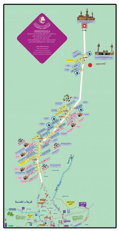 روضہ مبارک حضرت عباس(ع) کے تحت کام کرنے والے مرکز الکفیل برائے معلومات و اعداد وشمار نے عمومی فائدے اور خاص طور پر زائرین کی خدمت کے لیے کربلا تک آنے والے تین راستوں کے تفصیلی نقشے شائع کیے ہیں اور ان نقشوں میں راستے میں موجود تمام چھوٹے بڑے شہروں، قصبوں، عوامی مراکز، زائرین کی خدمت کے لیے بنائے گئے حسینیات و مواکب، طبی مراکز، فائر برگیڈ اور بہت سے دیگر مقامات کی نشاندہی کی گئی ہے۔