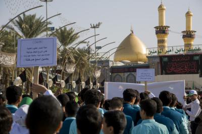 The students and teachers of the Secondary School of the Master of Water "Sayed al-Ma" for boys established by the Department of Education at the al-Abbas's (p) Holy Shrine, have organized a condolence procession on Thursday morning the 26th of Safar 1439 AH corresponding to the November 16, 2017.