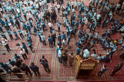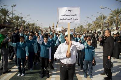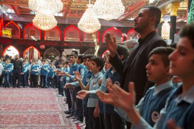 The Students' procession is held on the martyrdom anniversary of the Prophet of Mercy; Mohammad (Allah's prayers be upon him and upon his holy Household). The procession launched from the school heading to the shrine of the Master of martyrs Imam al-Hussayn (peace be upon him) to extend the condolences then to the shrine of his brother Aba al-Fadl al-Abbas (peace be upon him) passing by the area between the two holy shrines and then a lamentation "Latm" Majlis was held.