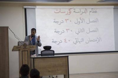 بعد ذلك توجه الطلبة الى قاعاتهم التدريسية، ليستقبلهم أساتذة وتدريسيو الجامعة فيها، ويتم التعارف فيما بينهم، معطين إياهم توضيحا لبعض المعلومات الأولية الخاصة بكل كلية وصورةً واضحةً عن دراستهم ومناهجهم العلمية وما سيتناولونه من موضوعات نظرية وعملية خلال دراستهم .