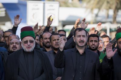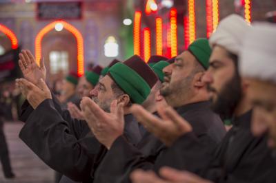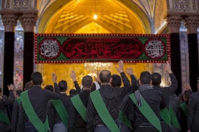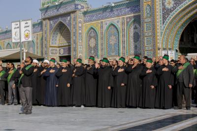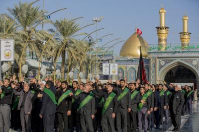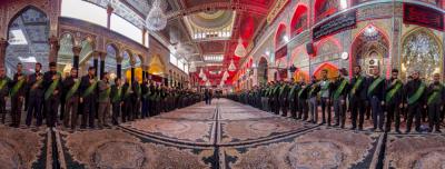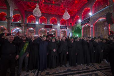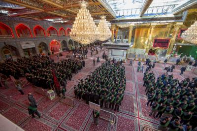 The condolence activities continued as the servants of Aba al-Fadl al-Abbas (peace be upon him) walked in an unified condolence procession from his holy shrine towards the shrine of the Master of the martyrs; Imam al-Hussayn (peace be upon him) passing by the area between the two holy shrines to hold a condolence Majlis there, with the participation of the servants of Aba Abdillah al-Hussayn (peace be upon him) from the staff of his holy shrine, chanting mourning poems expressing their loyalty and adherence to the authentic Mohammadi path for which Imam al-'Askari (peace be upon him) has fought and was killed martyr.