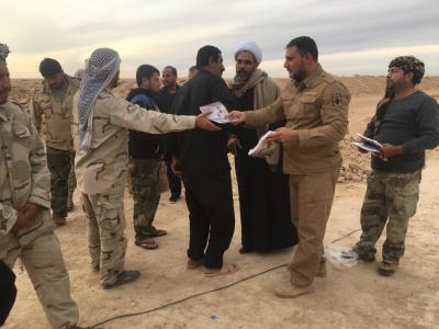 Ugeni kutoka Atabatu Abbasiyya tukufu, ulio husisha wafanya kazi na mashekhe kutoka katika kitengo cha dini, wameenda kutoa msaada wa kimkakati kwa wapiganaji wa jeshi la serikali na vikundi vya Hashdi Sha’abi waliopo katika mpaka wa Sirya na Iraq, pamoja na mji wa Hadhar na uwanja wa ndege wa Tharya karibu na mji wa Qirwaan, na kuwapa baadhi ya mahitaji muhimu, kama vile chakula, mavazi ya baridi na mablangeti.