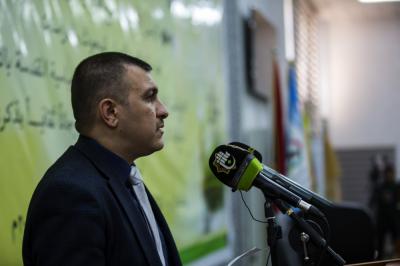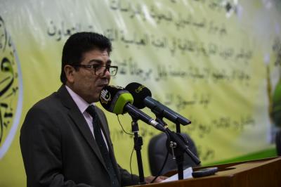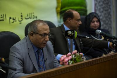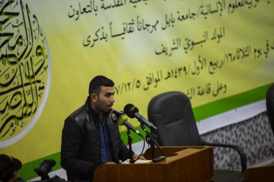 لتأتي بعدها كلمة كلية التربية للعلوم الانسانية والتي القاها أمين مجلس الكلية الدكتور أحمد رشيد الدده، ومما جاء فيها " سيد روحي واكليل وجودي يا رسول الله ها أنا ذا اقف بين يدي حضورك المقدس المزدان بإشراقك السابغ التمس من الله الرضا والقبول فاسعف لساني واحلل عقدا منه لا يقول فيك كلاما يلامس عالمك القدسي ولأحوم في فضاءات عشقك الازلي الذي يلامس شغاف القلب ولأطوف في ذلك الوجود البهي الذي تندى العالم بقطرة من فيوضات كرامته فنال جواز المرور بإرادة الخالق العظيم فأوجده اكراما لغاية خلقه ذلك (الاحمد) المرصع بالحبوة الالهية المحفوف بالنبل والكرامة المغموسة طينته بماء العصمة الملكوتية ".