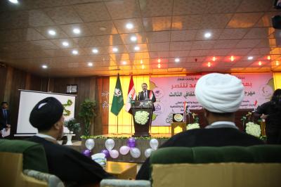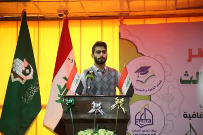 استهل الحفل بتلاوة مباركة لآيٍ من الذكر الحكيم وقراءة سورة الفاتحة على ارواح شهداء العراق، لتأتي كلمة الامانة العامة للعتبة العباسية المقدسة والتي ألقاها الدكتور أحمد الكعبي عضو مركز العميد الدولي للبحوث والدراسات، ومما جاء فيها "يحار المرء، ماذا يقول؟ وماذا يكتب في مولد الذكرى وذكرى المولد؟ فكل كلام في حق أحمد مبتور، وكل قول في شخصه يعتريه قصور، لا نريد في هذا المقام تكرار ما قيل، ولا الاتيان بما هو جديد، فلا جديد اعظم من حب لمحمد ( صلى الله عليه واله وسلم ) ولا جديد اسمى من شوقٍ لمحمد في الارجاء يتردد ، فها نحن نجدد العهد والحب لمحمدٍ ونستلهم من الذكرى دروساً وعِبَراً جديدة، ولنا في هذا العام وفي ذكرى المولد قصة بل قصص، فهذا عام نصر على اعداء العراق، به اعز الله المؤمنين وأذل الكافرين، وما تحقق ذلك الا بتمسكنا بنهج محمد وآل بيته الطيبين الطاهرين".