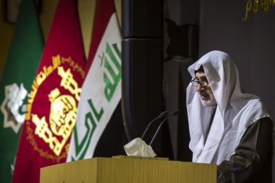 در ابتدای این مراسم و پس از تلاوت آیاتی چند از کلام الله مجید، اهدای ثواب قرائت سوره فاتحه به ارواح طیبه شهدای جهاد کفائی، پخش سرود ملی عراق و سرود حرم مطهر حضرت عباس علیه السلام، دکتر سید احسان الغریفی رئیس مرکز میراث کربلا پیام هیات امنا را قرائت نمود.