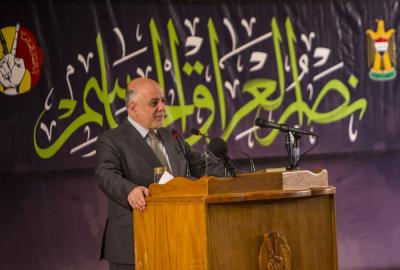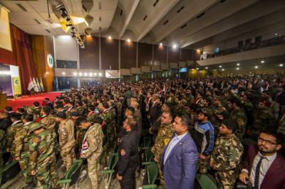 Then the Prime Minister Dr. Haidar al-Abadi delivered his word in which he presented his congratulations to the Iraqis for their victory: "We congratulate you once again for this great victory, and we congratulate you for the year of victory and the New Year without ISIL. This victory has created the unity of our people, as it was made by heroic brave fighters and the blood of the martyrs, the sacrifices of the wounded and every individual of this people who supported the victory with his money and time. We congratulate you for this great fatwa from the supreme religious authority, His Eminence Sayed Ali al-Sistani, and this fatwa, which our people have responded to, was the key to achieve victory, as they defended the homeland and the sanctuaries and they were the makers of the true victory. This victory was achieved when the popular mobilization stood up with the army, and when the anti-terrorist body stood with the police, when the tribesmen stood with these fighters, when they all stood with the Peshmerga on the outskirts of Mosul, they liberated Nineveh. These heroes stood with each other to achieve this victory. We must not forget then their sacrifices, and it is true that it is the responsibility of the state to take care of them but it is also the responsibility of the society to take care of the families of the martyrs, the wounded, and the disabled. I invite all the brothers of volunteers from the popular mobilization and from the people to form popular committees continuously to take care of the martyrs' families, and the state will be at their service, as it is part of the loyalty to the families of the martyrs and the wounded, and to preserve this victory based on the unity of the Iraqis.”