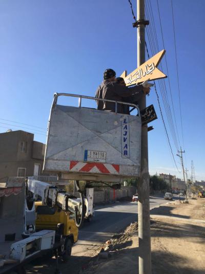 الكوادر الفنية في الوحدة المذكورة وبالتعاون مع قسم الشؤون الدينية في العتبة المقدسة قام بربط (25) لوحة دلالية ابتداءً من منطقة الأسكان وانتهاءً في طريق الحسينية وشارع ميثم التمار.