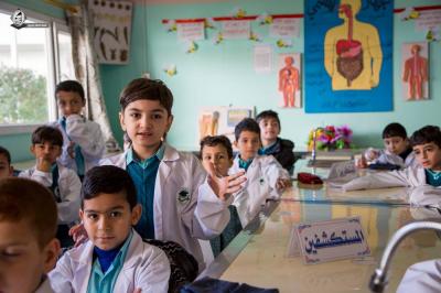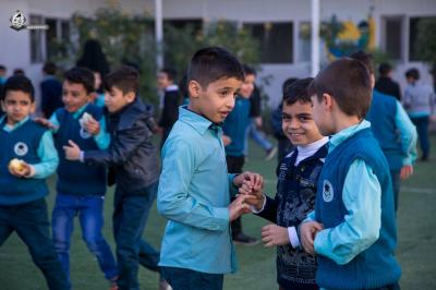 Les parents ont inscrit leurs enfants dans quatorze écoles : L'école primaire Al Ameed pour les garçons, l'école primaire Al Ameed pour les filles, l'école primaire Al Saki pour les garçons, l'école primaire Qamar pour les filles, l'école primaire Sayeed Al Maa des garçons, l'école primaire Nour Al Ameed pour les garçons, l'école Nour Al Abbas (paix soit sur lui) primaire pour garçons, l’école Nour Al Abbas (p) des filles, école secondaire Al-Ameed pour filles, école Abi Taleb (p) élémentaire filles, école secondaire Sayeed Al Maa garçons, lycée Al Ameed filles, en plus de ses trois jardins d'enfants : jardin d'enfants : crèche et garderie Al Saki, crèche et garderie Al Ameed, crèche er garderie Nour Al Abbas (p).