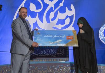 La cérémonie était témoin de la remise des diplômes d’un nombre d’étudiants de l’université islamique Al Kawthar, et la délégation des deux sanctuaires saints a été honoré, et à la fin un tirage au sort était organisé pour les visites aux sanctuaires saints à Karbala.