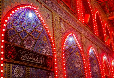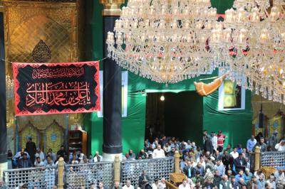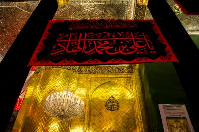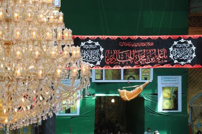 Le noir et le deuil couvre le sanctuaire saint Al Abbas (p) avec les banderoles et bannières de mots de condoléances qui ont couvert ses murs intérieurs en commémoration de la date d’anniversaire du martyr de l’Imam Ali Al Hadi paix sur lui, et consolant le prophète et Ahl Al Bayt (Prières et paix soient sur eux).