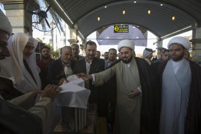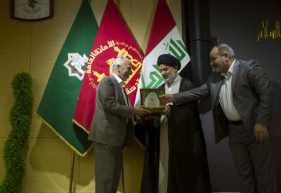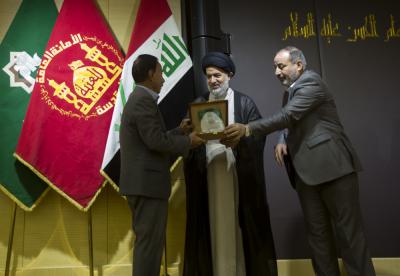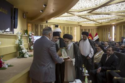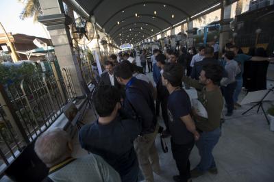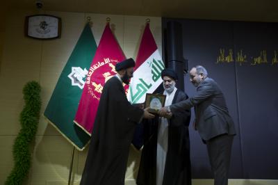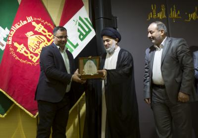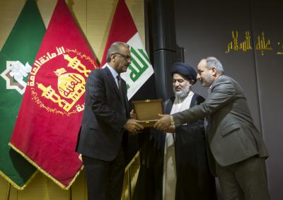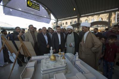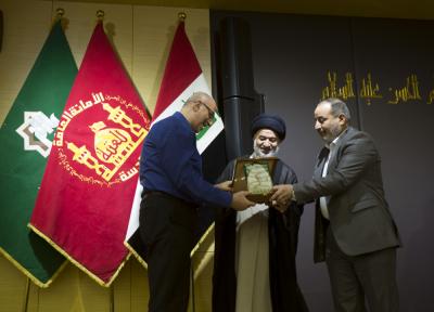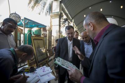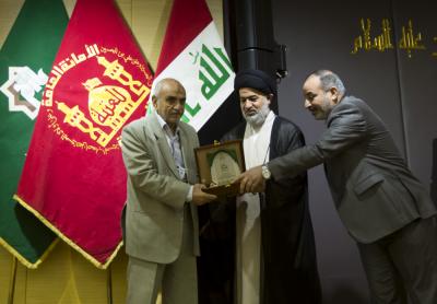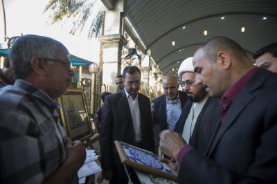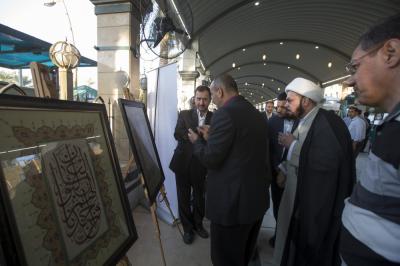 Then the poet Dr. Adel al-Basisi read his poem to the audience, followed by honoring some of the active figures in the heritage affairs. Then the attendees accompanied the Secretary General of the al-Abbas's (p) holy shrine for the opening of the exhibition held in the area between the two holy shrines with the participation of the heritage centers of basra, Hilla and Karbala as well as the Institute of the Holy Quran of the Department of the Islamic and Human Knowledge Affairs.