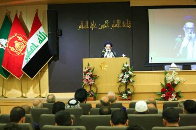 Followed by the word of the great Muhaqiq his eminence Sayed Ahmad al-Hussayni al-Ashkuri speaking about the great efforts to show the wealth of heritage of the country, especially in the last ten years in Iraq and in the holy shrine to revive many of the important heritage and manuscripts.