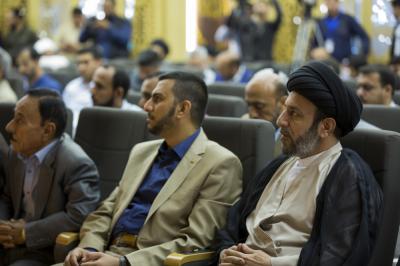 Then Sayed Ayad al-Shahrastani, director of the Library of the two Imams al-Jawadayn (peace be upon both of them) expressing his pride and honor that the holy shrines started developing their services for the service of the society, especially the al-Abbas's (p) holy shrine that has an important role in the field of science, knowledge and revival of the heritage represented by its Department of Islamic and Human Knowledge Affairs.