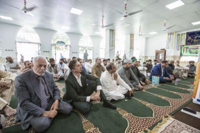 Hafla ilianza baada ya swala ya Dhuhurain katika msikiti wa taasisi, na adhana ilisomwa na muadhini wa Ataba mbili tukufu bwana Aadil Karbalai.