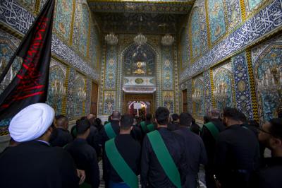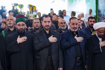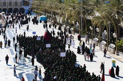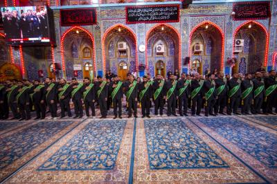 بقلوب خاشعة يملؤها الحزن والأسى وبكلمات ترددت من أفواه المحبين والموالين لمحمد وال بيته الأبرار ومن داخل صحن المولى حامل اللواء كافل الحوراء ابا الفضل العباس أنطلق موكب عزاء موحد لخدام العتبتين المقدستين الحسينية والعباسية الذي ضمّ مسؤولي ومنتسبي العتبة العبّاسية المقدّسة في ال15 من شهر رجب 1439ه والموافق 2/نيسان/2018 لتقديم التعازي للإمام الحسين وأخيه أبي الفضل العبّاس(عليهما السلام) بالفاجعة الأليمة لوفاة الصدّيقة عقيلة الطالبيين السيدة زينب (عليها السلام).