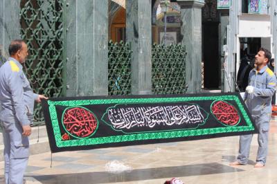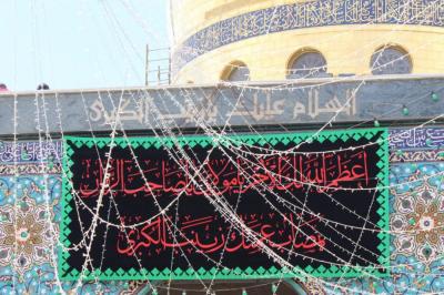 Diese Arbeiten erfolgten gleichzeitig mit dem Beginn des Gedenkens an ihren traurigen Todestag, was die Diener von Abu Fadl al Abbas (Friede sei mit ihnen) dazu veranlasste Zeichen der Trauer und Beileidsbekundung und schwarze Stoffe und Banner im Hof und am Grab der Stätte zu verbreiten.