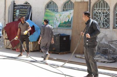 Die Arbeit der Diener von Abu Fadl al Abbas (Friede sei mit ihm) ist eine Meisterleistung, die jeder bezeugt, denn das Personal führte ihre Arbeit an Tag und Nacht durch und das zufolge der Anweisungen des legitimen Leiters der heiligen abbasitischen Stätte. In Ergänzung dazu wurde ein integrierter Elektroraum vorbereitet, sowie Schilder für die reinen Imame, die während der Geburts- und Todestage und zu religiösen Anlässen aufgehangen werden.