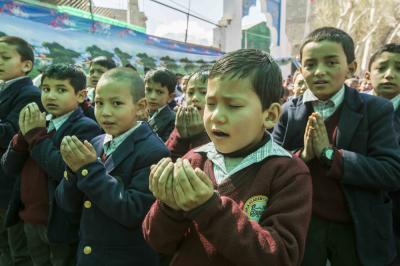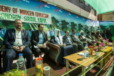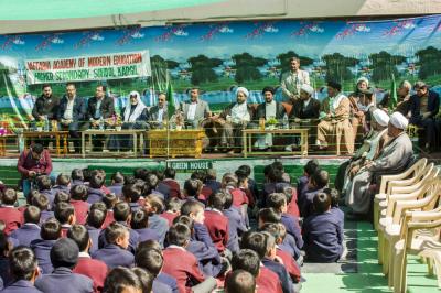 Ugeni ulipata mapokezi makubwa sana kutoka kwa wanafunzi na walimu wao, kisha wakasikiliza tamko la ukaribisho kutoka kwa Shekh Sayyid Adhafari aliye zungumza kwa niaba ya walimu na wanafunzi wa shule hiyo, alitoa shukrani za dhati kwa kutembelewa na ugeni huo, unao toka katika ardhi tukufu na maeneo matakatifu nchini Iraq, akasema kua ziara hii ni ya kihistoria katika shule hiyo kwani hawajawahi kupokea ugeni kama huu tangu kuanzishwa kwa shule hiyo mwaka (1995m), akafafanua kua hii ni taasisi ya elimu ya dini na sekula, inawanafunzi zaidi ya (550) kuanzia kiwango cha awali hadi sekondani, wamekua wakifaulisha vizuri kwa mujibu wa viwango vya mji huu pamoja na kua na vifaa duni, jitihada za wanafunzi katika masomo zinazo tokana na mapenzi yao kwa Mtume na watu wa nyumbani kwake (a.s) ndio siraha kubwa inayo fanya wafaulu.