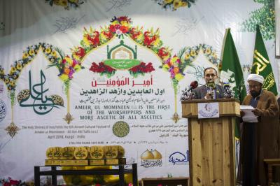 In beautiful atmosphere filled with mercy and blessings as well as the love of the Imams of Ahl al-Bayt (peace be upon them) and within the celebrations of the birth anniversary of the Commander of the Faithful Ali Ibn Abi Taleb (peace be upon both of them), the al-Abbas's (p) Holy Shrine concluded on Saturday afternoon 19th of Rajab 1439 Ah corresponding to April 7, 2018 the Sixth Annual Cultural Festival of the Commander of the Faithful (peace be upon him) in the Indian city of Kargil, which was held under the slogan "The Commander of the Faithful (peace be upon him), first of worshippers and the most ascetic of all" with the participation of the holy shrine of Imam al-Hussayn (peace be upon him) and of Imam al-Hadi and Imam al-'Askari (peace be upon both of them) in the Ithna Ashari Hawza in the mentioned city, which opened its doors for large crowds of many lovers and followers of Ahl al-Bayt (peace be upon them), who attended hours before the beginning of the closing ceremony.