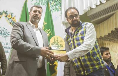 The closing ceremony began with the recitation of verses from the Holy Quran recited by the reader of the Imam al-Hussayn's (p) holy shrine; Falah Zulif, followed by a speech of the holy shrines participating in the festival delivered by Mr. Nafie Jamal, deputy director general of the holy shrine of Imam al-Hadi and Imam al-'Askari (peace be upon both of them). Followed by the word of the representative of the supreme religious authority in Kashmir, Sayed Mohamad Baqir al-Musawi al-Najafi al-Kashmiri, who was unable to attend the ceremony because of some health problems, delivered on his behalf by his son, Sayed. Abu al-Hasan al-Mahdi.