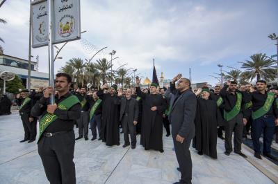 من جانبٍ آخر بدأت المواكب الحسينية المعزية منذ صباح اليوم بتوافدها الى العتبتين المقدّستين الحسينية والعباسية لتقديم العزاء مواساةً للإمام الحسين وأخيه أبي الفضل العبّاس(عليهما السلام) كونهم اصحاب العزاء .