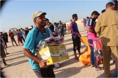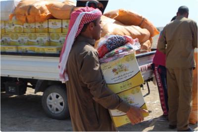 Il est à noter que les convois de secours effectués par le comité de secours continuent de travailler dans le cadre du planning et calendrier fixé que ce soit pour les camps des personnes déplacées ou les villes libérées, afin de soulager la famille quelque-soit leurs couleurs ou sectes, et enlever la brume faite sur l’image de l’autorité religieuse suprême et qu’il est le père protecteur ».