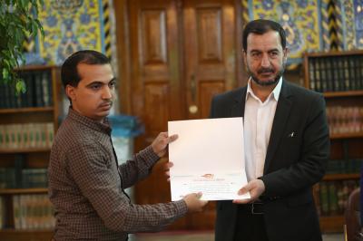 The Iraqi reader Haj Osama al-Karbala'i, the Indonesian reader of Sayed Fadhlan Zayn al-Din, and the director of Dar al-Quran in the Imam ar-Redha's (p) holy shrine; Sheikh Mahdi Shuja', have recited in this evening verses from the Holy Quran, concluded by the recitation of one of the participants in the project the thousand Hafez in the House of the Holy Quran in the Imam al-Hussayn's (p) holy shrine.