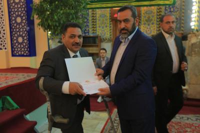 The holy shrine of the Master of Aba al-Fadl al-Abbas (peace be upon him) hosted an evening of the popular poetry presented by poets of the Iraqi provinces, starting with Karbala by the poet Qasem al-Bakhit, then from Babylon by the poet Mohamad al-Fatimi, then from Wasit by the poet Ali al-Fatlawi, and then from the Karbala province by the poet Ala' al-Bidhani. Followed by the poet Hussayn al-Habthali from Nasiriya, the poet 'Ala al-'Issawi from Basra, the poet Hasan al-Barki from Samawa, and the closing was with the poet Zayn al-'Abideen al-Sa'idi in Karbala.