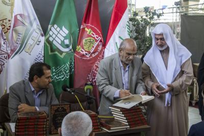 Maonyesho ya vitabu ya kimataifa ya Karbala, hayakuishia kuonyesha vitabu peke yake, kulikua na shughuli zingine za ziada, kama vile hafla ya kutia saini kitabu, jambo hilo ni miongoni mwa mambo muhimu katika maonyesho ya kimataifa, asubuhi ya Juma Tatu (6 Shabani 1439h) sawa na (23 Aprili 2018m) imefanyika hafla ya kutia saini kitabu cha (Mazuri ya majaalisi za Karbala), kilicho tolewa na kituo cha turathi za Karbala / kitengo cha maarifa ya kiislamu na kibinadamu cha Atabatu Abbasiyya tukufu, kilicho andikwa na Ustadh Salmaan Haadi Aali-Twa’ma.