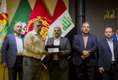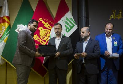La célébration qui a eu lieu dans le cadre du 14ème festival culturel mondial le printemps du martyr, organisé le mardi matin 7 Cha’ban 1439 AH correspondant au 24 Avril 2018 à la sale imam Al Hassan au sanctuaire saint Al Abbas, en présence de son secrétaire général ; l’ingénieur Mohammed Al Ashiqer (LV) et une délégation du sanctuaire saint Al Hussein en plus des familles des martyrs honorés.