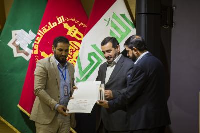 The ceremony was concluded by honoring the distinguished publishing houses preceded by honoring representatives of the Popular Mobilization Forces, namely the Ali Al Akbar's (p) Brigade and the al-Abbas's (p) Fighting Squad, which participated in the fair, followed by a tribute to Karbala Satellite TV channel and AlKafeel Center for Photography and Artistic Production in appreciation of their efforts to cover the fair.