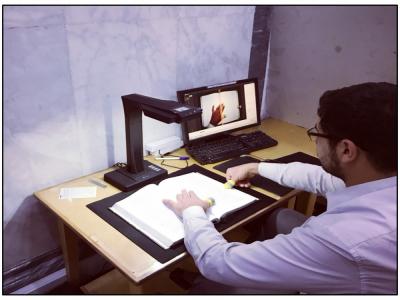 Il ajoute : « Le processus de conversion des copies papier en électronique passe par plusieurs étapes jusqu'à la dernière étape, nettoyage, photographie, modification et réparation des papiers endommagés, numérotation, archivage et exportation, toutes ces étapes sont supervisées par les cadres de la bibliothèque ».
