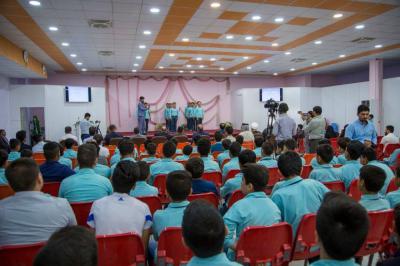 Hafla ya ufungaji iliyo fanyika katika ukumbi wa shule ya Qamar ilihudhuriwa na viongozi wa kitengo hicho pamoja na wawakilishi wa afisi ya malezi ya mkoa wa Karbala, baada ya Qur’an ya ufunguzi na kusomwa surat Fat-ha kwa ajili ya kuwarehemu mashahidi wa Iraq, ukafuata ujumbe kutoka kwa makamo kiongozi wa kituo cha malezi ulio wasilishwa na Dokta Mushtaqu Ali, akabainisha kua: “Atabatu Abbasiyya tukufu inafanya kila aina ya juhudi kutambulisha majukumu ya jamii kuhusu Imamu Mahdi katika kipindi hiki cha ghaiba, miongoni mwa program zao ni (program ya Mahdawiyya katika siku mia moja) iliyo simamiwa na shule za Ameed katika hatua ya pili, program hii imehusisha wanafunzi wa viwango viwili, ambao ni: wanafunzi wa kidado cha kwanza na kidato cha pili”.