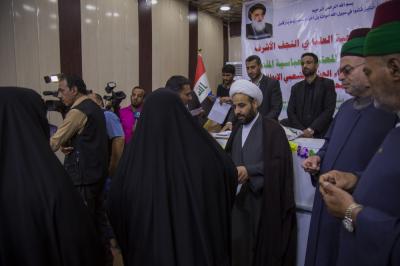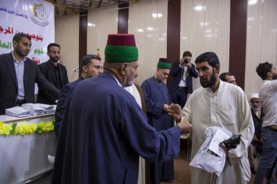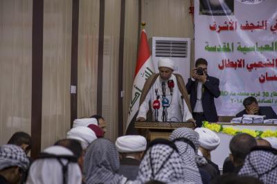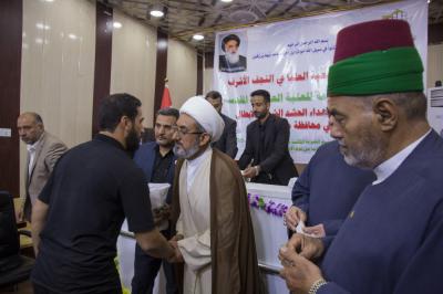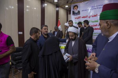 Während der Auszeichnungsfeier sprach der Vertreter der religiösen Autorität in der Provinz, Sheikh Ahmad Maktaf. In seiner Rede sagte er: „Wir alle wissen, dass sich unsere Söhne in der ganzen Nation zusammengetan haben, um dem Ausruf der Autorität in Nadschaf zu folgen und die Ehre und Heiligtümer zu verteidigen. Ihre Ernte wurde mit einem großen Sieg gekrönt. Dies ist in erster und letzter Linie dem reinen Blut unserer Söhne zu verdanken, die auf dieser Erde gefallen sind und sie mit ihrem reinen Blut bewässerten. Geehrte Geschwister, würden wir den Opferbringenden und ihren Familien das Wasser unserer Augen geben, so wäre dies immer noch zu wenig. In einem Wort von Großayatollah Al-Sistani während meines Besuches bei ihm letzte Woche, sagte er in ihrem Recht und im Recht ihrer Familien: „Ihnen gebührt der große Dank von uns allen, vom Irak und vom gesamten Gebiet“, denn durch das Blut eurer Söhne war das Land siegreich und durch euer Blut  ist das Land Iraks erneut vereint, nachdem die Feinde auf seine Spaltung gehofft hatten.“