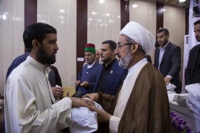 In einer Geste, die nicht die erste der heiligen abbasitischen Stätte ist, wurden erneut einige Familien der Märtyrer des Haschd Asch-Schabi ausgezeichnet, die ihr Blut geopfert haben, um das Land des Irak zu befreien und seine Heiligtümer vor der Schändung terroristischer Banden zu schützen, als sie dem Ruf der Nation und der obersten religiösen Autorität folgten. Diese Initiative ergreift die heilige Stätte seit Ausruf des Rechtsurteils der heiligen Verteidigung, um -wenn auch nur mit einem geringen Teil dazu beizutragen- das Leid der Familien zu lindern. Zu diesem Zweck wurde ein Orts- und Zeitplan erstellt, der unter der Aufsicht der Abteilung für religiöse Angelegenheiten umgesetzt wird.