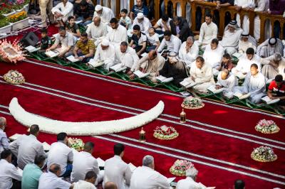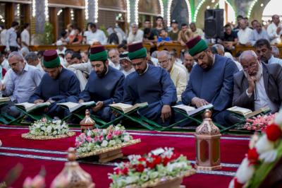 استهلّت العتبةُ العبّاسية المقدّسة متمثّلةً بمعهد القرآن الكريم التابع لقسم شؤون المعارف الإسلاميّة والإنسانيّة فيها برنامجها القرآنيّ الذي أعدّته لإحياء أيّام وليالي شهر القرآن وربيعه شهر رمضان المبارك بإطلاق الختمة القرآنيّة المرتّلة، ففي أجواءٍ روحانيّة ونفحاتٍ إيمانيّة من جوار مرقد أبي الفضل العبّاس(عليه السلام) تعالت أصواتُ التالين لكتاب الله تعالى وبحضورِ ومشاركةِ جمعٍ من المؤمنين الزائرين.