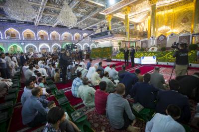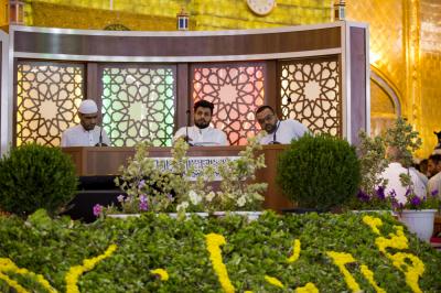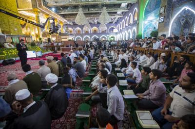 In continuation of its last three successful editions, the fourth edition of the National Quranic Team Contest, held by the Center for Readers' Preparation at the Institute of the Holy Quran of the al-Abbas's (p) Holy Shrine, was held on the evening of the first day of the holy month of Ramadan in the holy shrine of Aba al-Fadl al-Abbas (peace be upon him), with the participation of several Quranic teams from different Iraqi provinces. The contest will last for (15) days, four teams will compete each day. The first day the first competition was between teams of Wasit and Karbala (B) while the second competition was between teams of Baghdad and of Karbala (A).