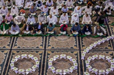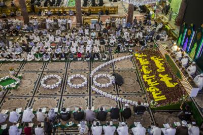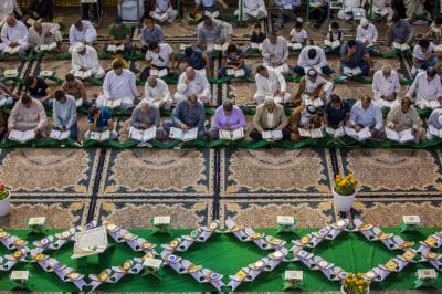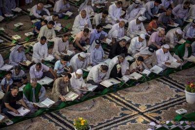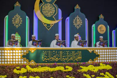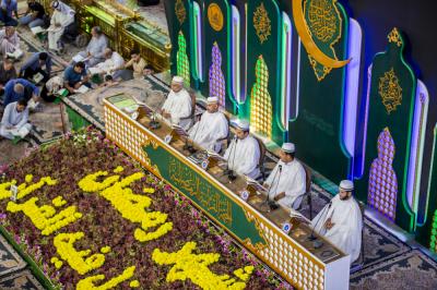 Umgeben von Blumen und Sprüchen, die auf Holz graviert oder durch Blumensträuße entworfen wurden, rezitieren die Gläubigen aufmerksam, mit schönen Stimmen und berührten Herzen die Verse des Korans. An dieser besonderen Rezitation beteiligen sich internationale Rezitatoren, die durch ihre Stimmen den Duft dieser Verse in den Heiligtümern verbreiten.
